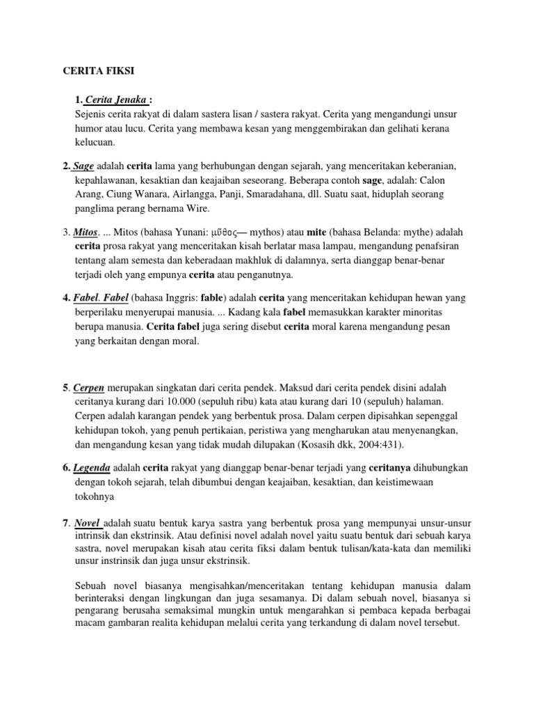 Jenis Jenis Cerita Fiksi Halaman All Kompas Com